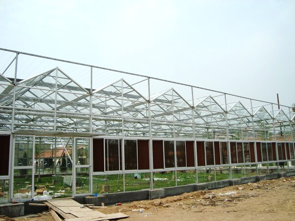 溫室主體:采用熱浸鍍鋅鋼制骨架結構形式:文洛型覆蓋材料:頂部及四周采用4mm厚浮法玻璃;側部也可采用雙層中空玻璃;特點介紹:外型美觀,透光率高且穩定;密封性好,通風面積大,造價適中;不足是玻璃導熱系數